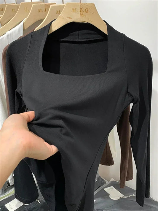 Skinny Cotton Long Sleeve Crop Tops